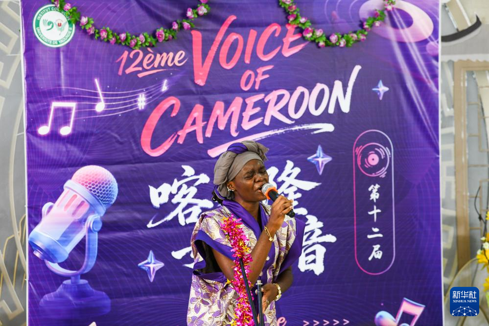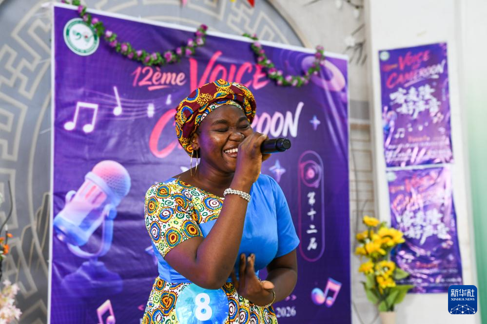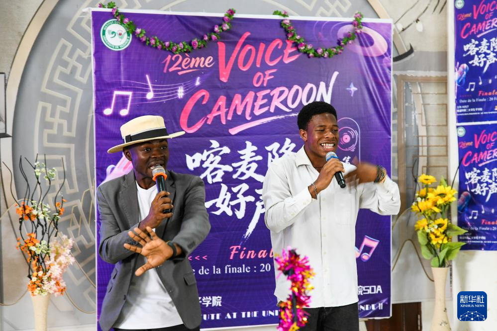 2月20日,在喀麦隆索阿,参赛选手在“喀麦隆好声音”中文歌曲大赛决赛中演唱。