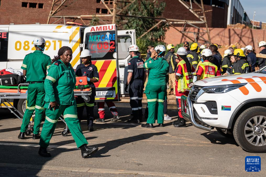 3月2日,工作人员在南非约翰内斯堡的建筑坍塌事故现场作业。新华社发(希拉兹·穆罕默德摄)