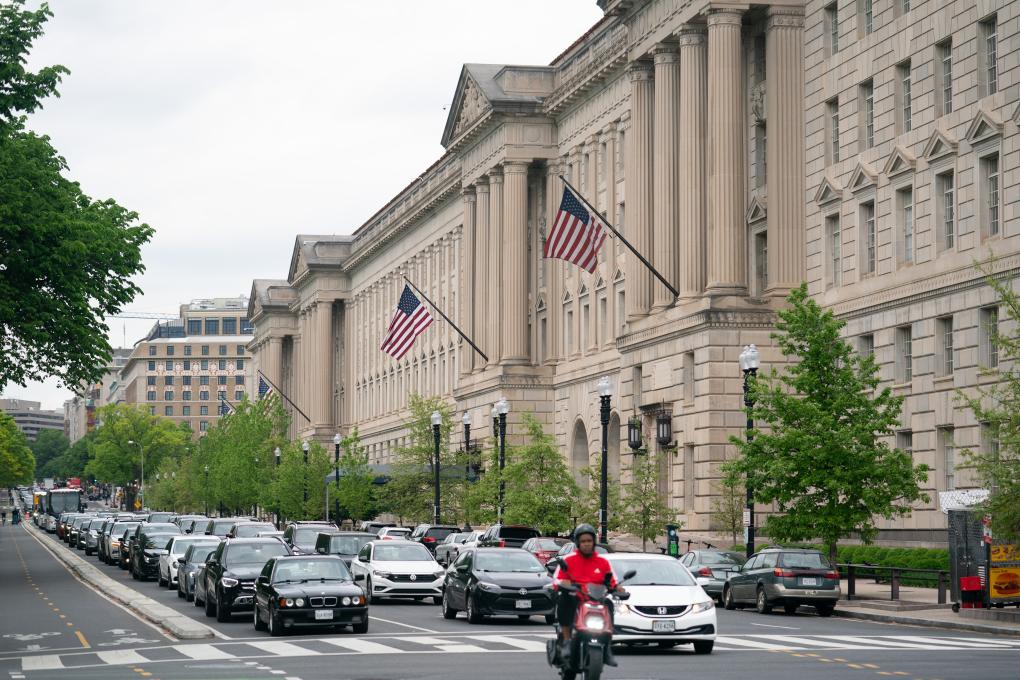 这是2024年4月25日在美国首都华盛顿拍摄的商务部大楼。新华社记者刘杰摄