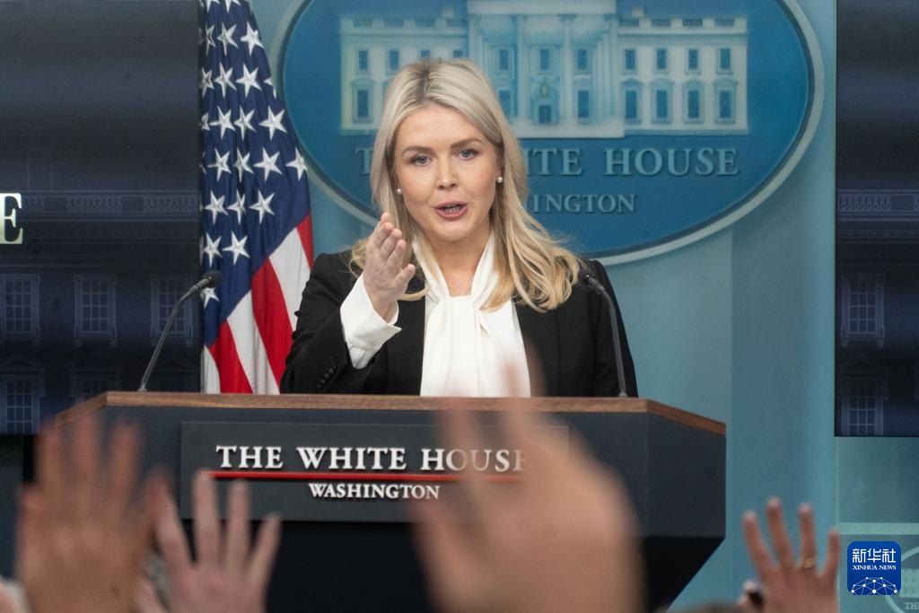 3月4日,在美国首都华盛顿,白宫新闻秘书莱维特出席记者会。新华社发(李源清摄)