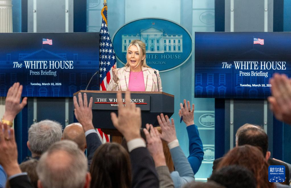 3月10日,在美国首都华盛顿,白宫新闻秘书莱维特出席记者会。新华社发(李源清摄)