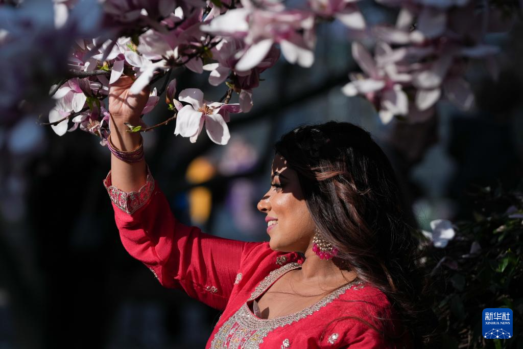 眼下正值意大利米兰玉兰花花期,人们趁着晴好天气出门踏青,赏花休闲。