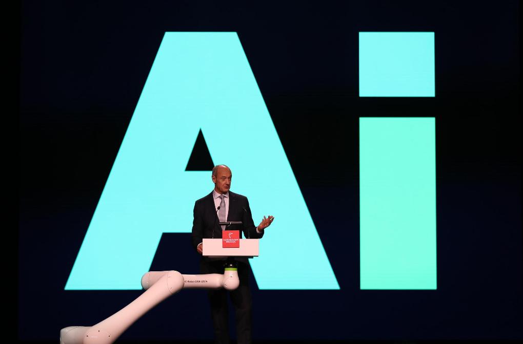 2025年3月30日,西门子股份公司董事会主席博乐仁在德国汉诺威工业博览会开幕式上致辞。新华社记者杜哲宇摄