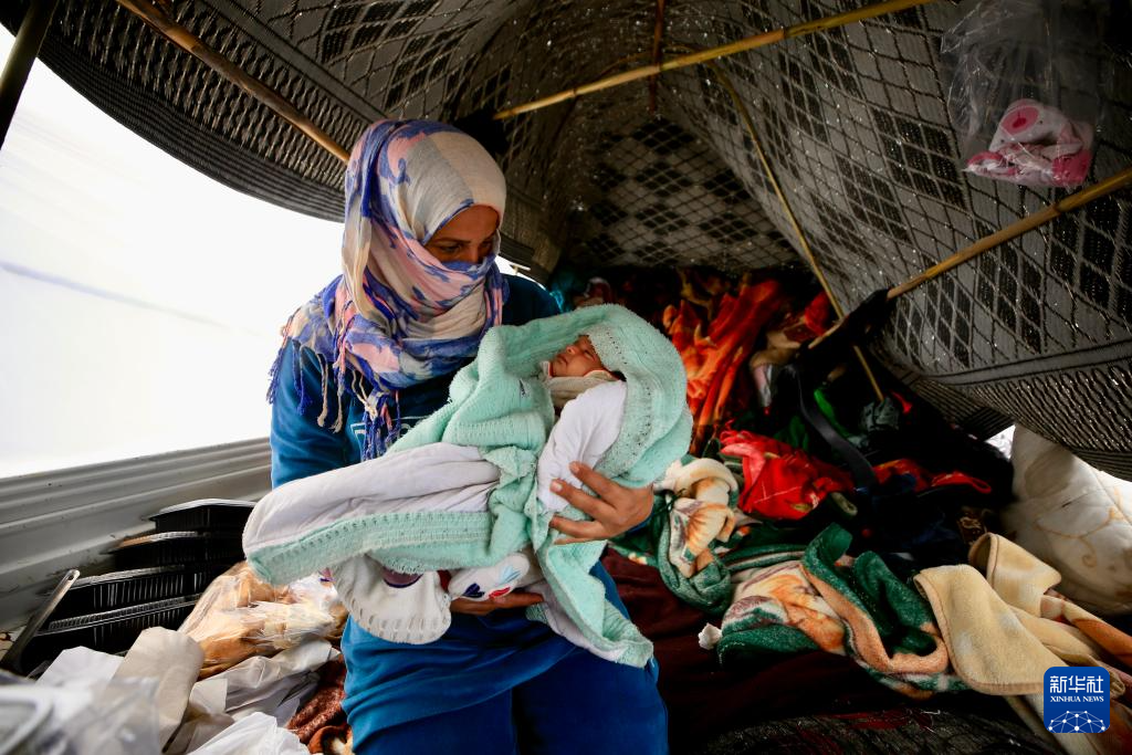 3月15日,在黎巴嫩南部赛达市附近的一条公路旁,黎巴嫩流离失所者在汽车帐篷内避雨。