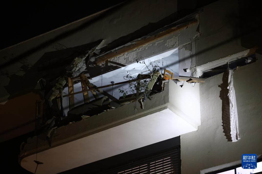 这是3月18日在以色列中部城市拉马特干拍摄的一处导弹袭击波及地点。