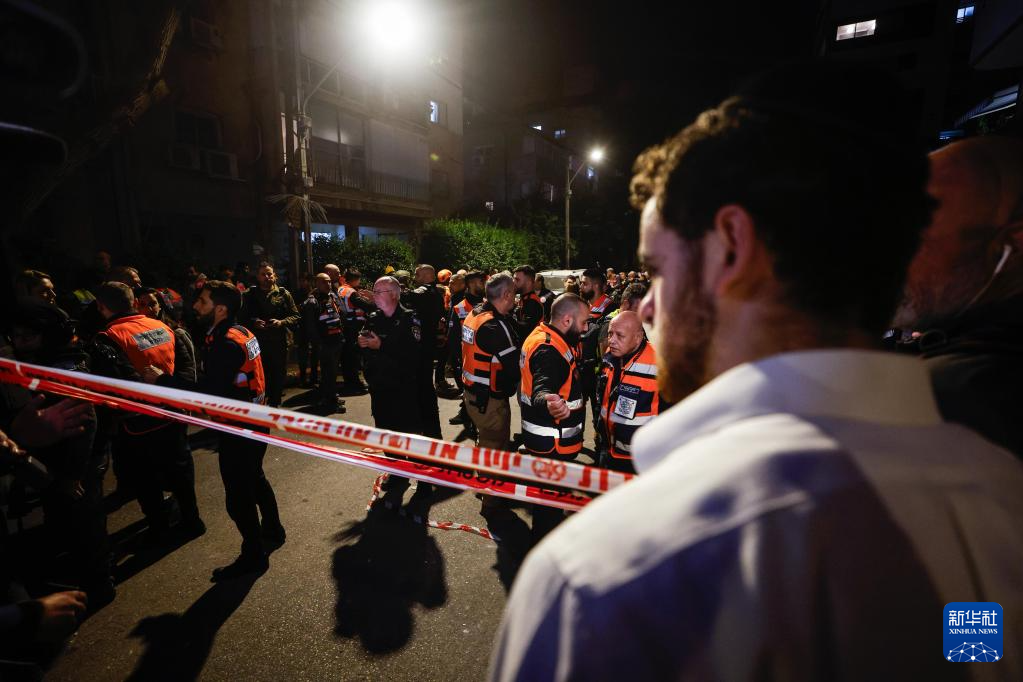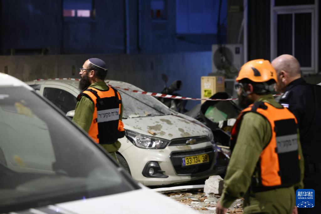 3月18日,在以色列中部城市拉马特干,应急反应人员在一处导弹袭击波及地点开展工作。