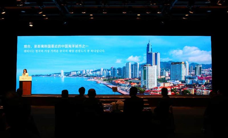 图为在韩国首尔举行的烟台文旅推介会现场。
