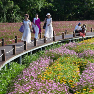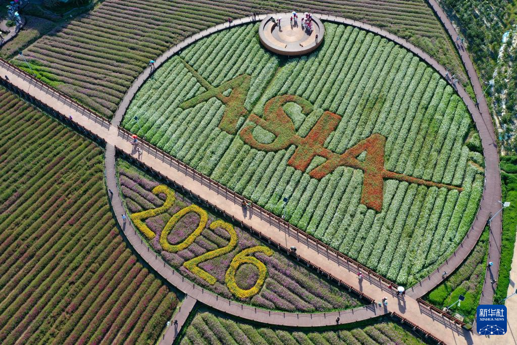 博鳌亚洲论坛2026年年会临近,琼海市博鳌镇南强村数十亩主题花海迎来盛放期,吸引游客前来踏青赏花。