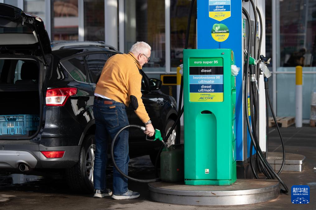 3月16日,一名来自德国的车主在波兰斯武比采的一处加油站将燃油注入油桶。新华社记者 张豪夫 摄