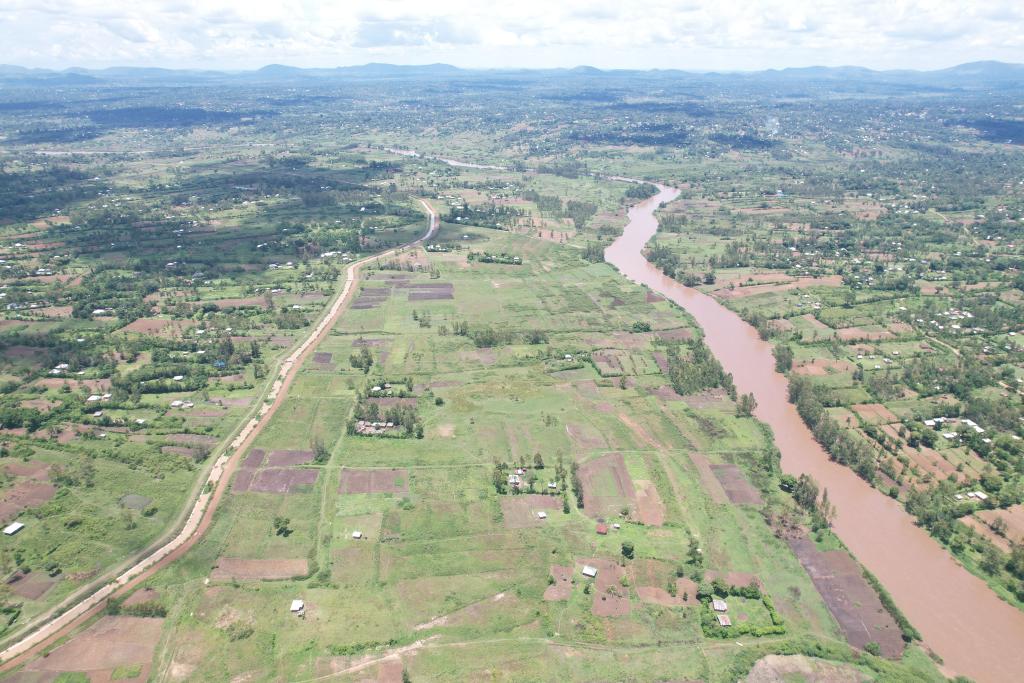 这是3月4日在肯尼亚西亚亚郡拍摄的恩佐亚河下游灌溉和防洪工程项目(无人机照片)。新华社记者 刘琼 摄