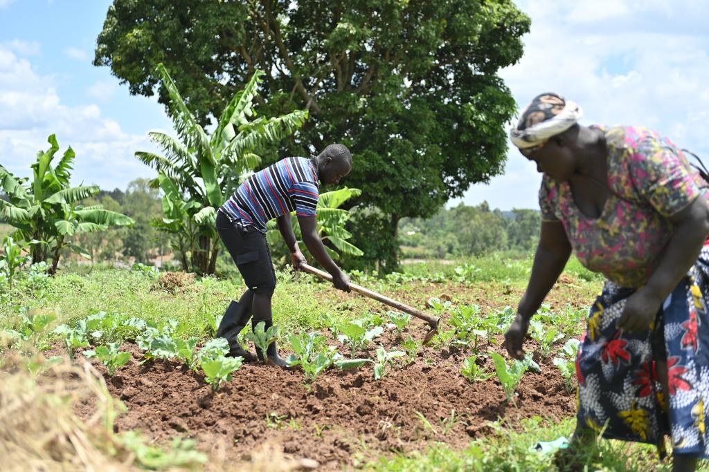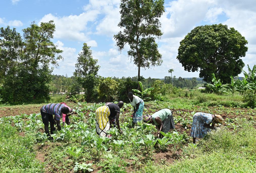 3月4日,在肯尼亚西亚亚郡,农民在恩佐亚河附近的田间劳作。新华社记者 刘琼 摄