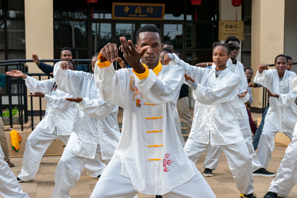 ↑2026年3月18日,当地学生在肯尼亚内罗毕大学孔子学院习练太极拳。