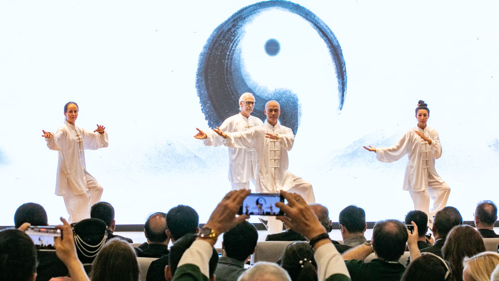 ↑2026年3月18日,首个“国际太极拳日”即将到来之际,以“健康生活,太极同行”为主题的庆祝活动在法国巴黎联合国教科文组织总部举行。