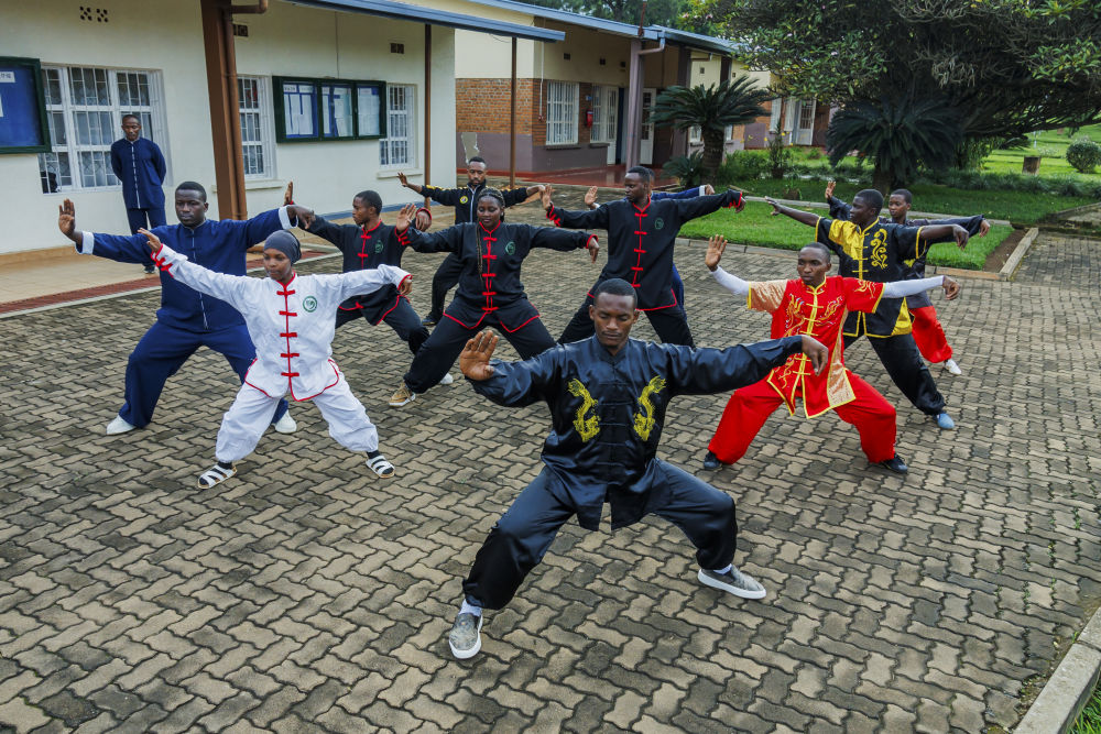 ↑2026年3月18日,在卢旺达首都基加利,当地太极拳爱好者在卢旺达大学孔子学院习练太极拳。