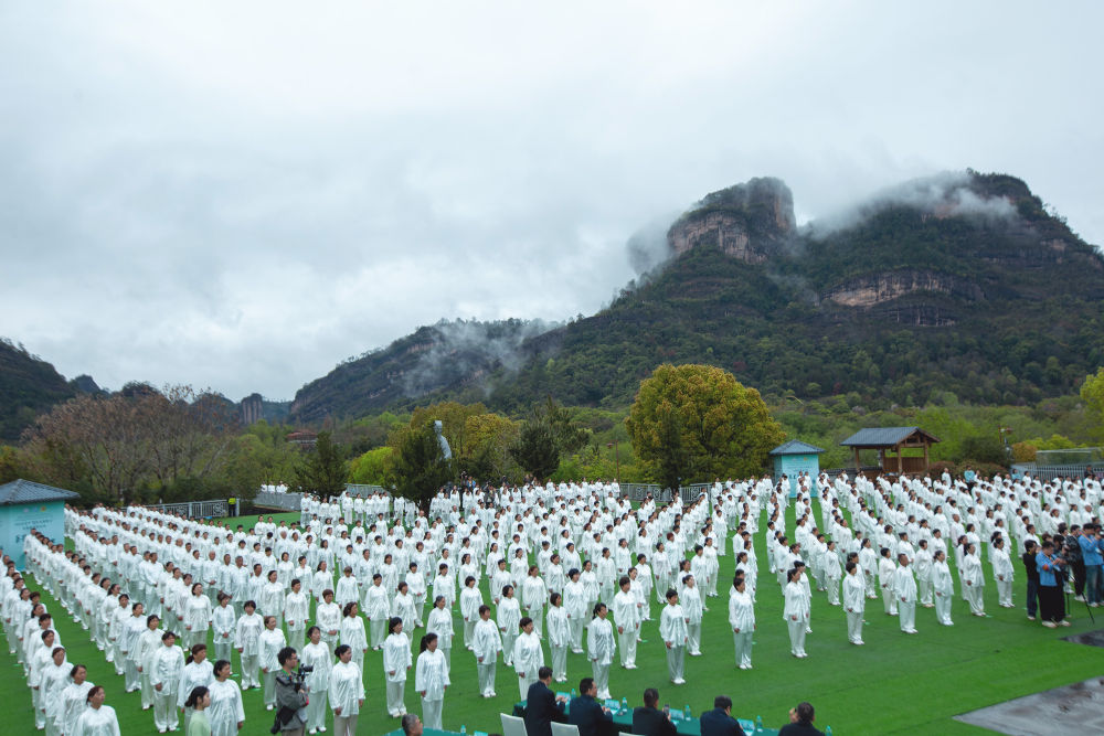↑2024年10月12日,太极爱好者在世界武当太极大会开幕式上表演。