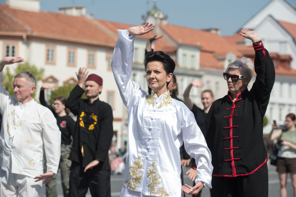 ↑2019年4月27日,在立陶宛维尔纽斯,当地太极拳爱好者习练太极拳。