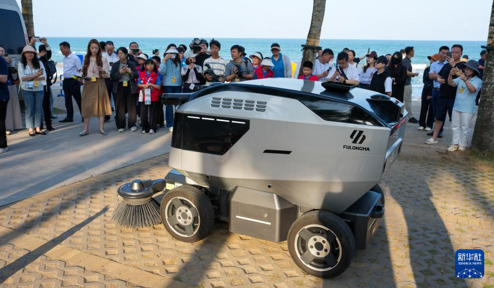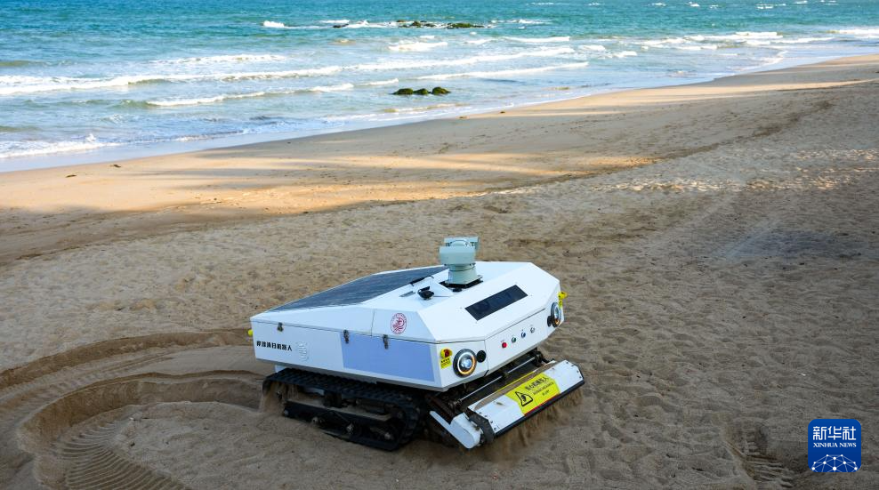 岸滩清扫机器人在海南省琼海市博鳌镇海滩作业(3月23日摄)。