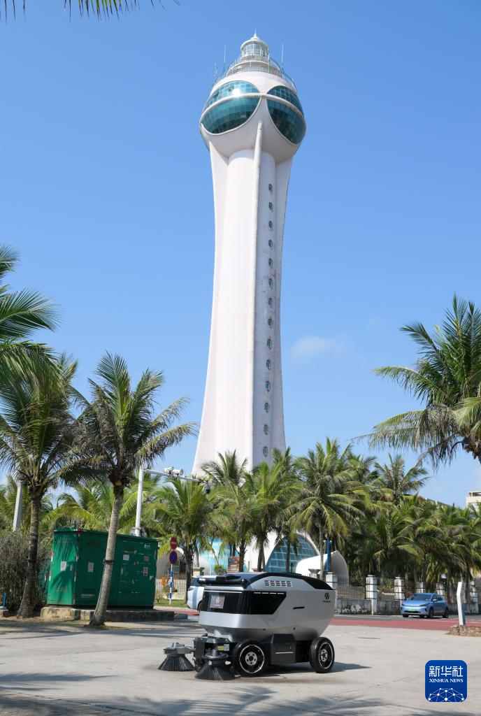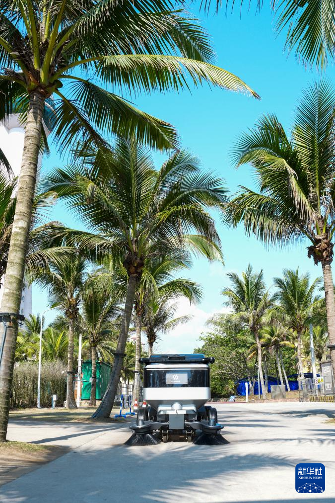 智能清扫机器人在海南省琼海市博鳌镇作业(3月25日摄)。
