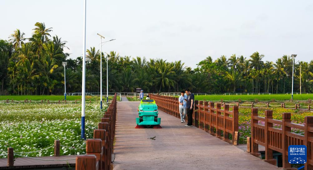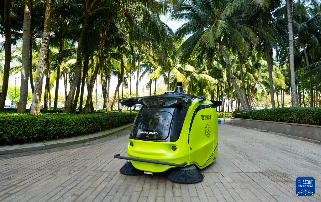 智能清扫机器人在海南省琼海市博鳌镇南强村作业(3月23日摄)。