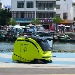 小蜜蜂智慧清洁机器人在海南省琼海市潭门镇排港村作业(3月25日摄)。