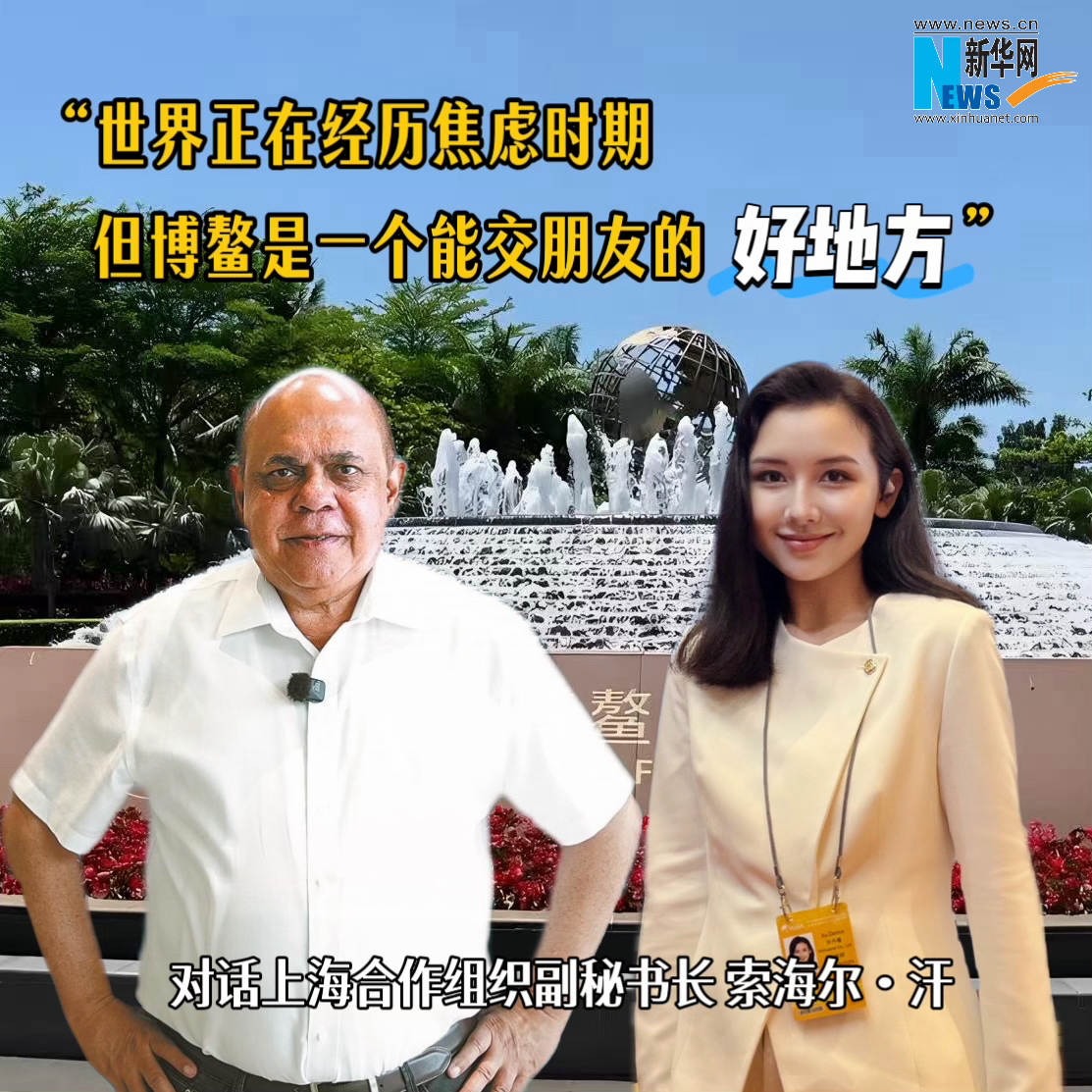 博鳌亚洲论坛2026年年会现场,上海合作组织副秘书长索海尔·汗在接受新华网记者采访时表示,博鳌亚洲论坛是一个交流思想、结交朋友的好地方,能获取未来可在区域及全球层面落地应用的思路。