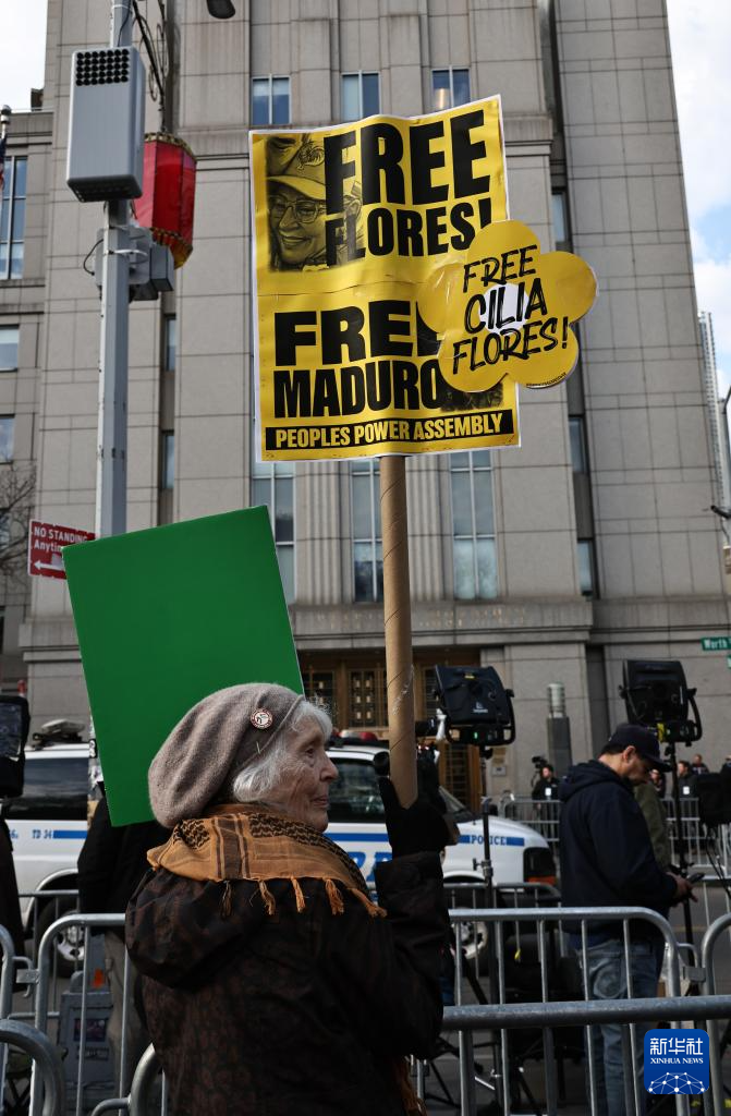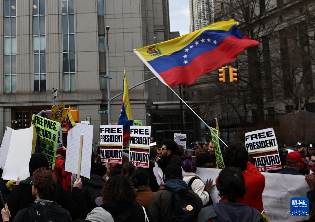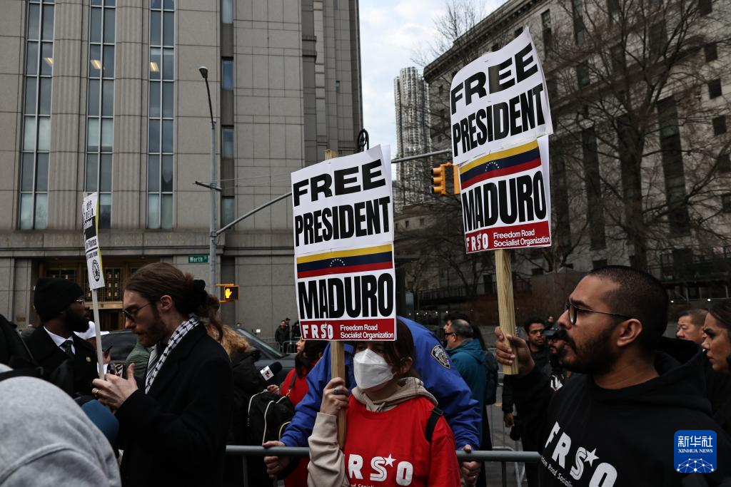 26日上午,遭美国强行控制的委内瑞拉总统马杜罗在美国纽约南区联邦地区法院再次出庭,其撤案请求遭法官驳回。当天上午,一些马杜罗的支持者聚集在法院外,高呼口号,要求释放马杜罗,反对美国政府军事干涉委内瑞拉。