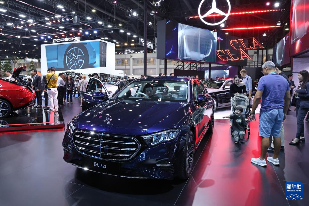 这是3月26日在泰国曼谷国际车展上拍摄的奔驰轿车。