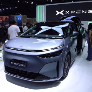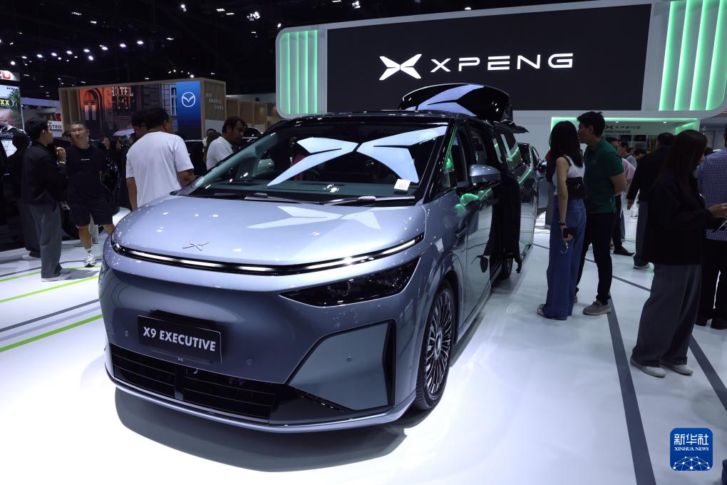 这是3月26日在泰国曼谷国际车展上拍摄的小鹏X9电动车。