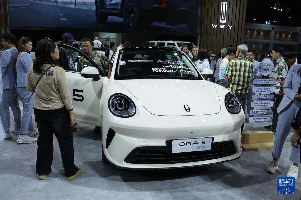这是3月26日在泰国曼谷国际车展上拍摄的欧拉电动车。