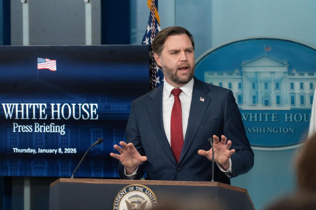 1月8日,在美国首都华盛顿白宫,美国副总统万斯回答记者提问。新华社发(李源清摄)