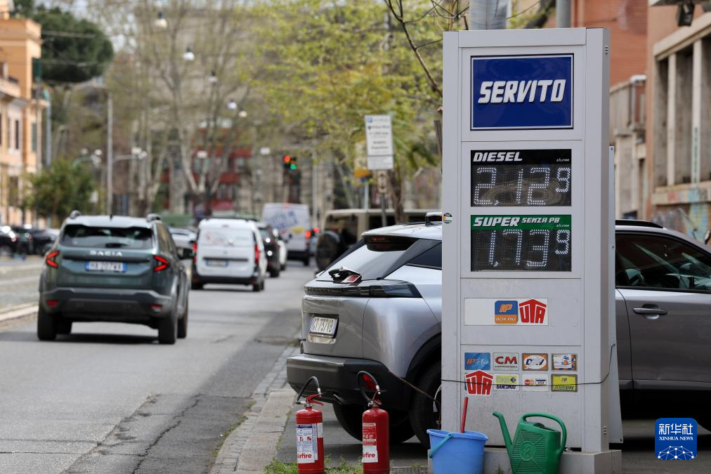 这是3月31日在意大利罗马一处加油站拍摄的油价牌。新华社记者 李京 摄