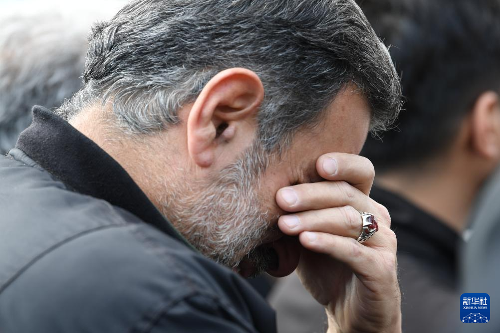 4月1日,在伊朗首都德黑兰革命广场,民众参加为伊朗伊斯兰革命卫队海军司令坦格西里、伊朗武装部队总参谋长顾问贾姆希德·埃哈基及伊朗武装部队军事人员举行的告别仪式时情绪激动。新华社记者 沙达提 摄