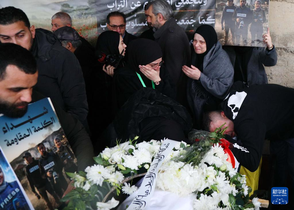 3月29日,在黎巴嫩舒韦法特,人们哀悼遭以色列空袭遇难的记者。