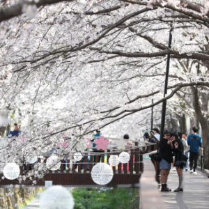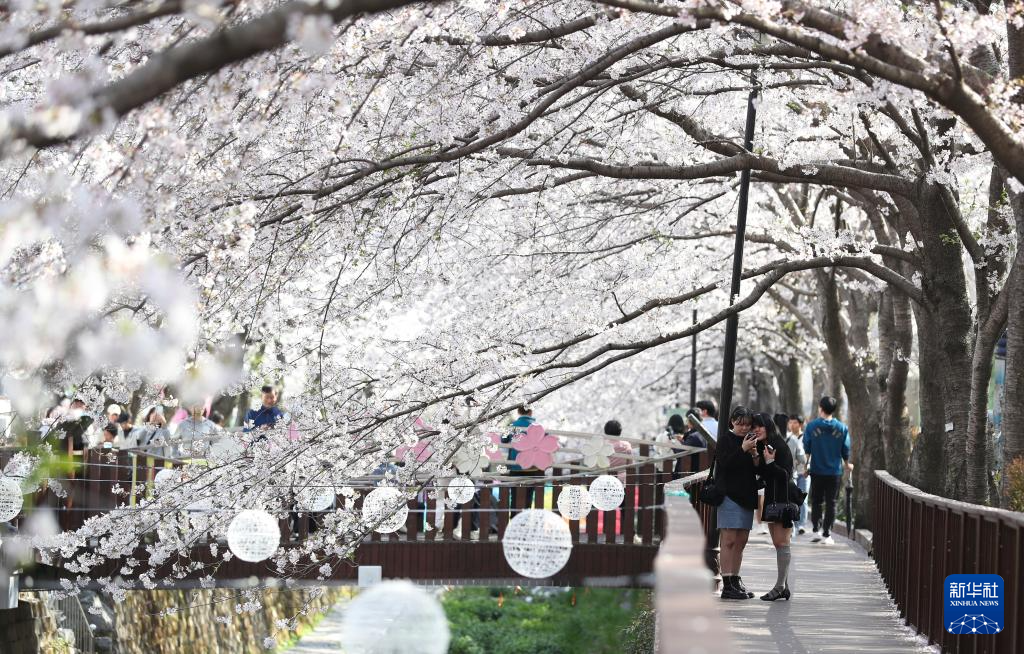 近日,韩国昌原市樱花盛开。昌原市的镇海军港樱花节是韩国最著名的樱花盛典之一,吸引大批游客慕名参观。