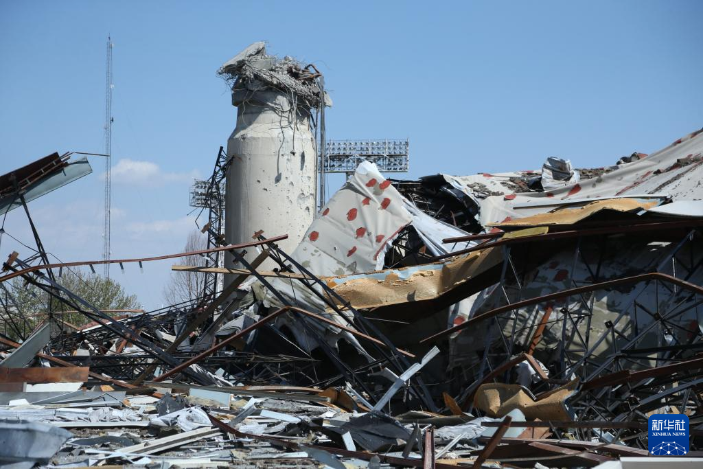 这是4月3日在伊朗首都德黑兰的阿扎迪体育场内拍摄的受损体育馆。