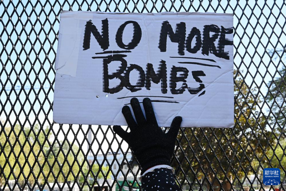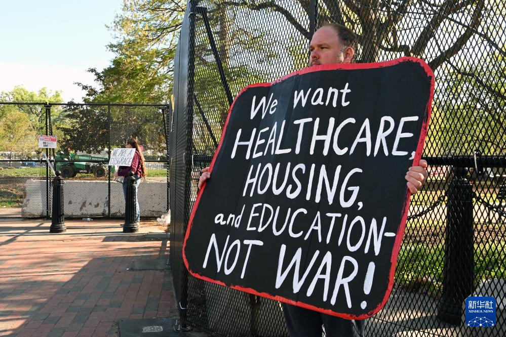 4月7日,人们在美国首都华盛顿的白宫前示威。新华社记者 李睿 摄