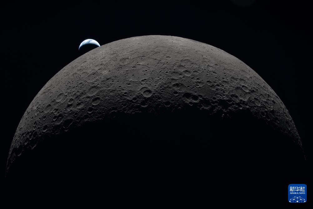 这是从执行“阿耳忒弥斯2号”载人绕月飞行测试任务的“猎户座”飞船上拍摄的地落(4月6日摄)。新华社发(美国国家航空航天局供图)