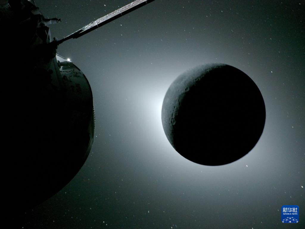 这是从执行“阿耳忒弥斯2号”载人绕月飞行测试任务的“猎户座”飞船上拍摄的月球遮住太阳的时刻(4月6日摄)。新华社发(美国国家航空航天局供图)