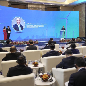 4月9日,由中企承建的哈萨克斯坦“米尔内”1吉瓦风电项目建设启动仪式在阿斯塔纳举行。新华社发(奥斯帕诺夫摄)