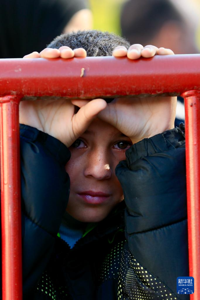 4月11日,在黎巴嫩西顿市,一名儿童参加遭以军空袭丧生的13名安全人员的葬礼。