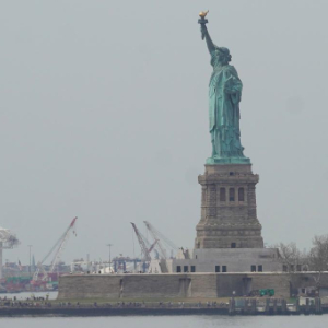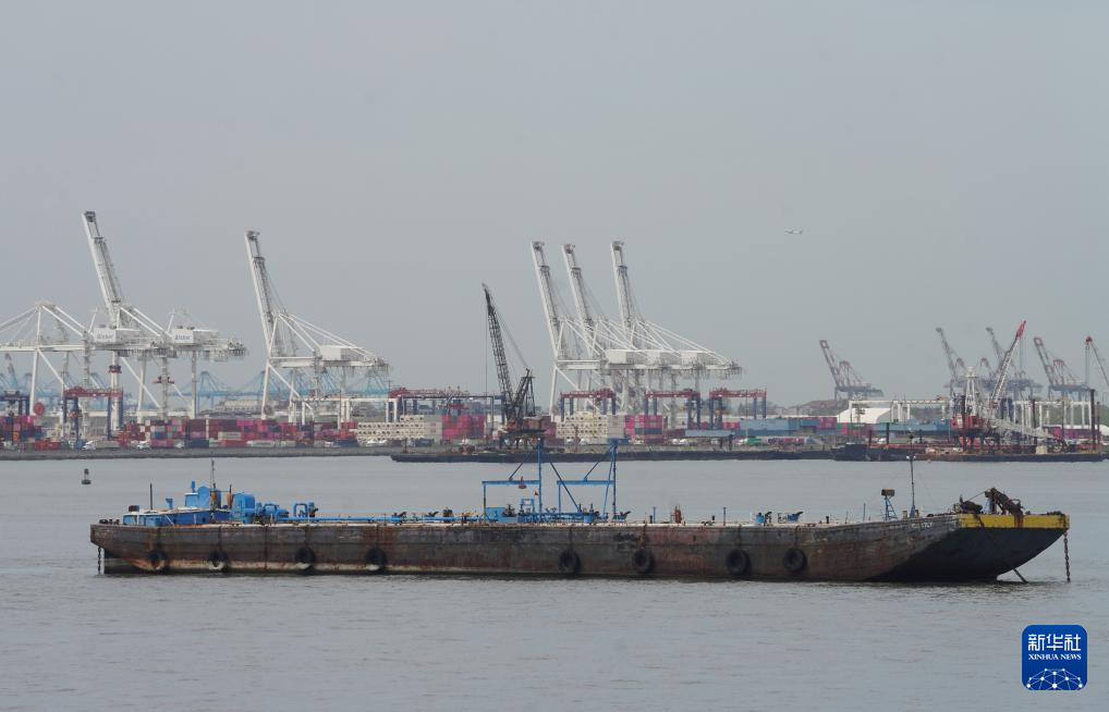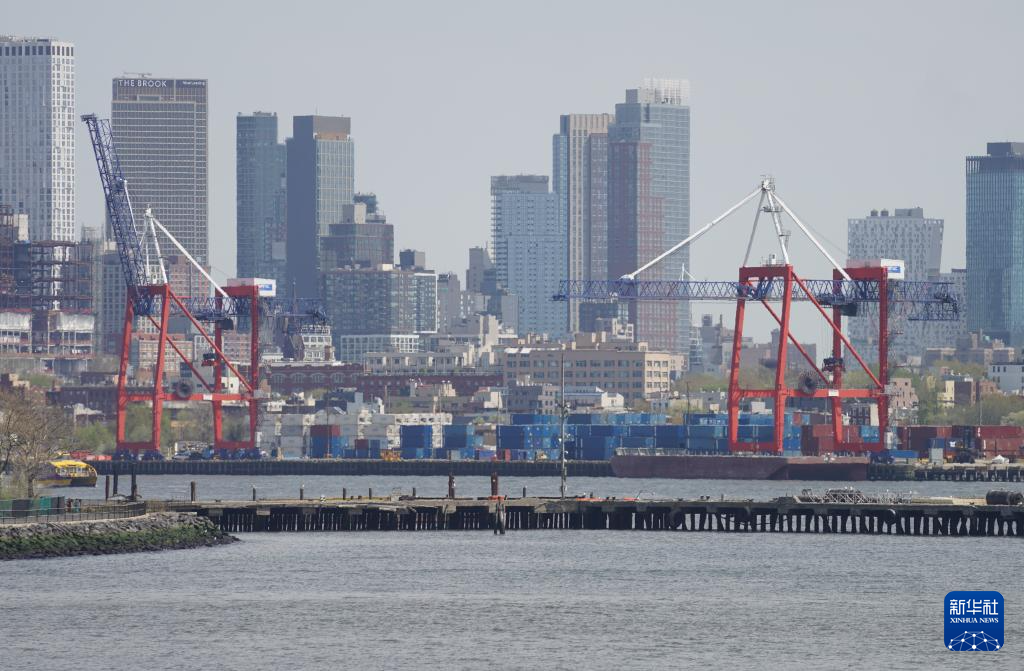 这是4月15日在美国纽约拍摄的纽约和新泽西港。纽约和新泽西港是美国东北部最大的贸易和货物进出口中心。