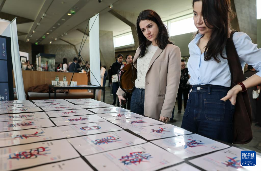 4月16日,在位于法国巴黎的联合国教科文组织总部,嘉宾在以“中文:点亮多彩梦想”为主题的联合国中文日庆祝活动上参观。 新华社记者 邬惠我 摄