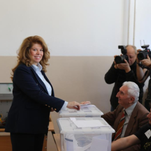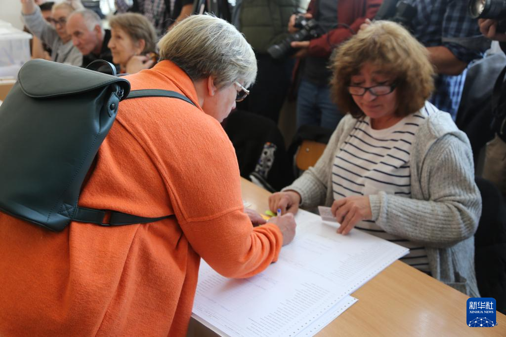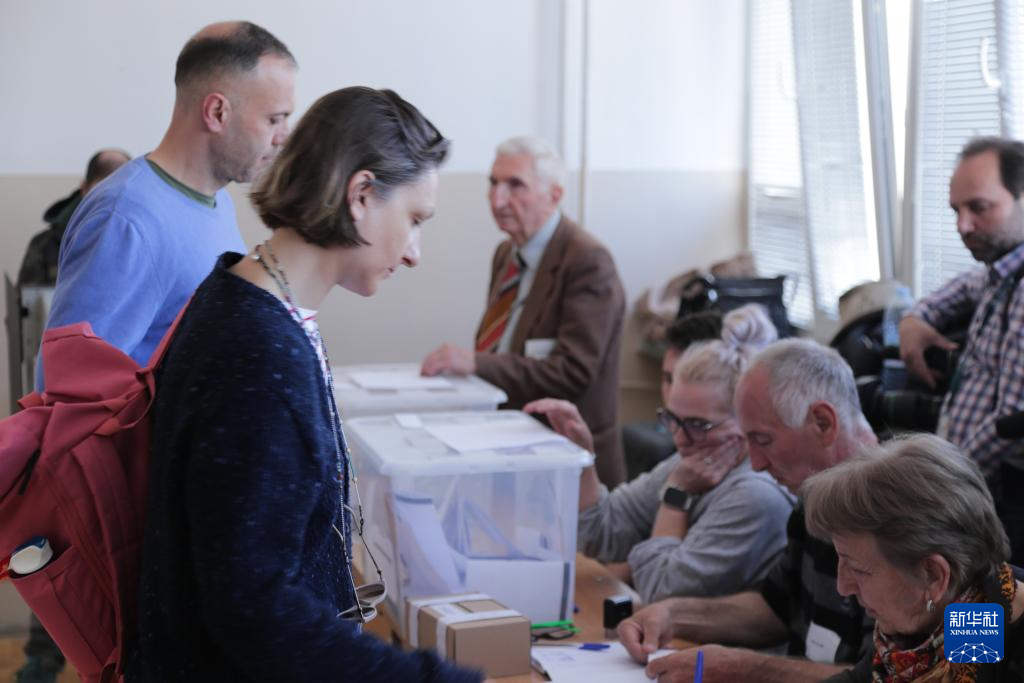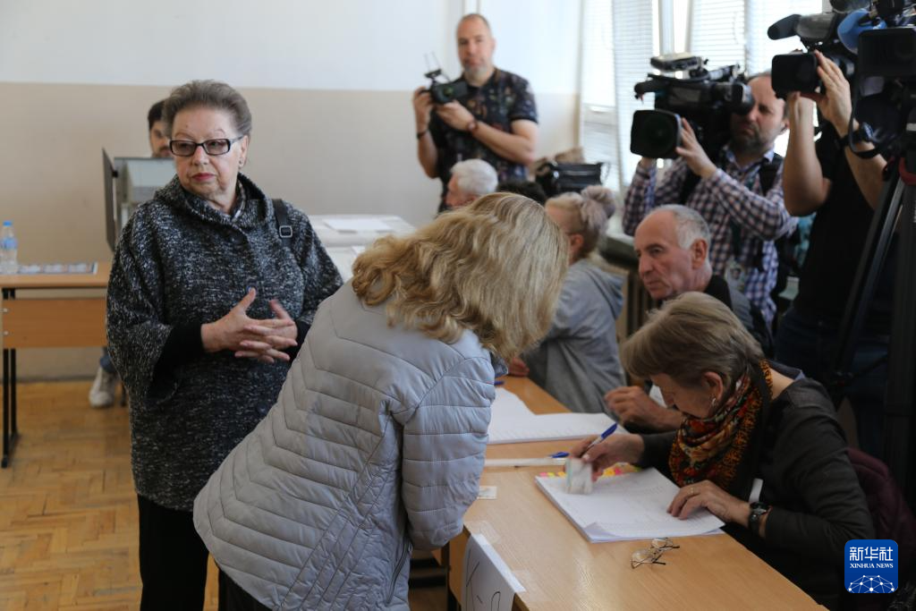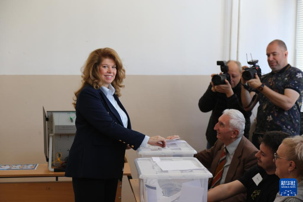 4月19日,在保加利亚索非亚,保加利亚总统约托娃在一处投票站投票。