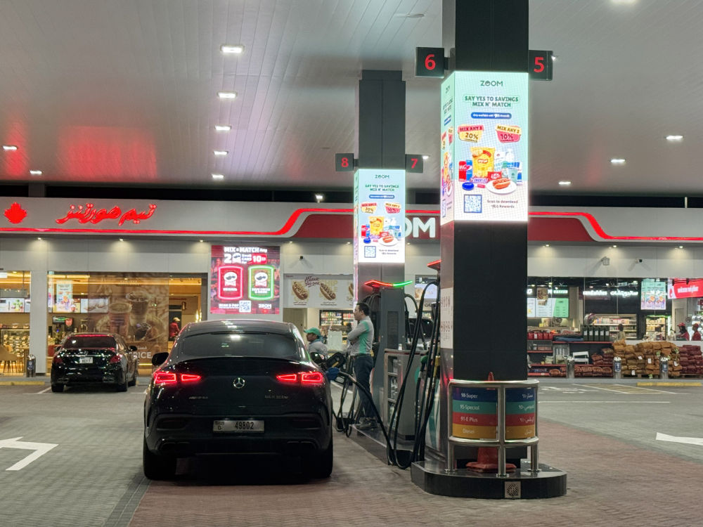 3月16日,车辆在阿联酋迪拜一处加油站加油。(温新年 摄)
