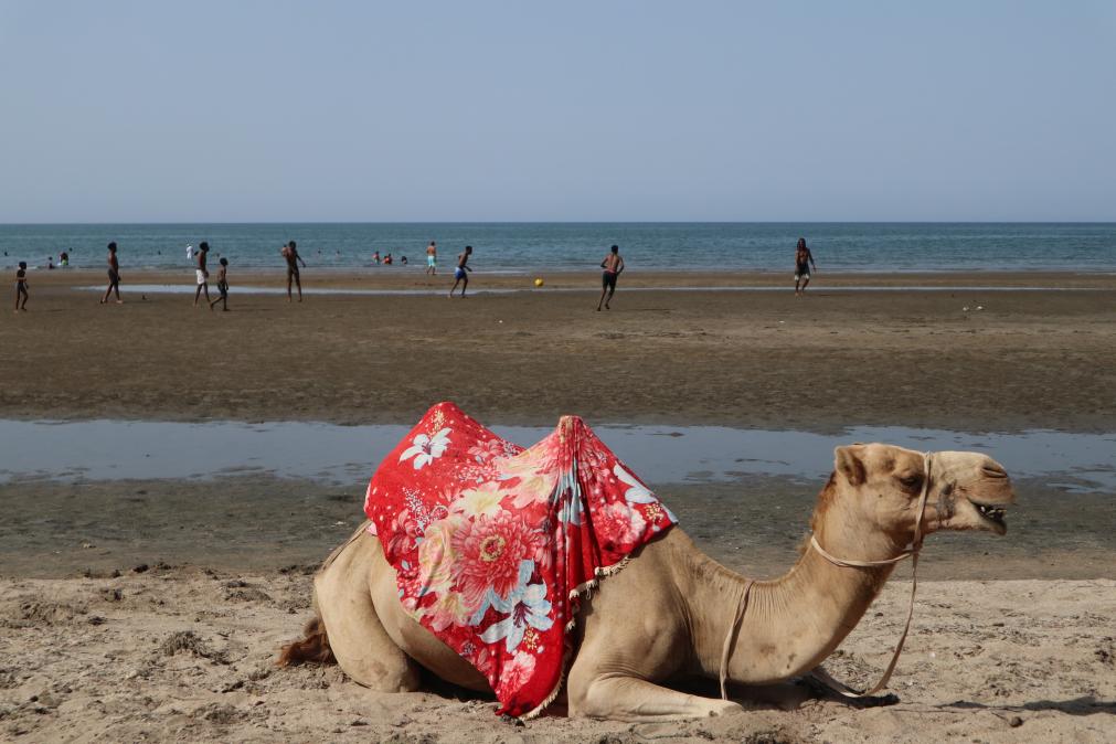 这是2025年6月7日在厄立特里亚马萨瓦海边拍摄的骆驼。新华社记者刘方强摄