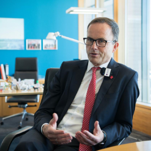 4月22日,德国汉诺威工业博览会主办方德意志会展公司董事会主席约亨·科克勒在展会期间接受新华社记者采访。 新华社记者 张豪夫 摄