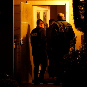 4月26日凌晨,在美国加利福尼亚州托兰斯市,联邦调查局探员进入科尔·艾伦的住所搜查。