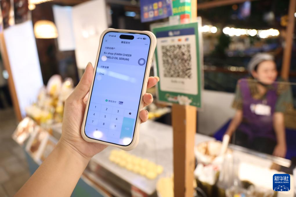 中国移动支付正伴随着中国游客的脚步加速“走出去”。在泰国首都曼谷湄南河畔的暹罗天地商场,甜品店店员米颂一边整理刚出炉的点心,一边指着收银台旁的蓝色“PromptPay”二维码说:“微信扫这里就可以。”她告诉记者,自去年年底起,中国游客可以直接扫码支付,“不用换现金,买东西更加轻松便利”。