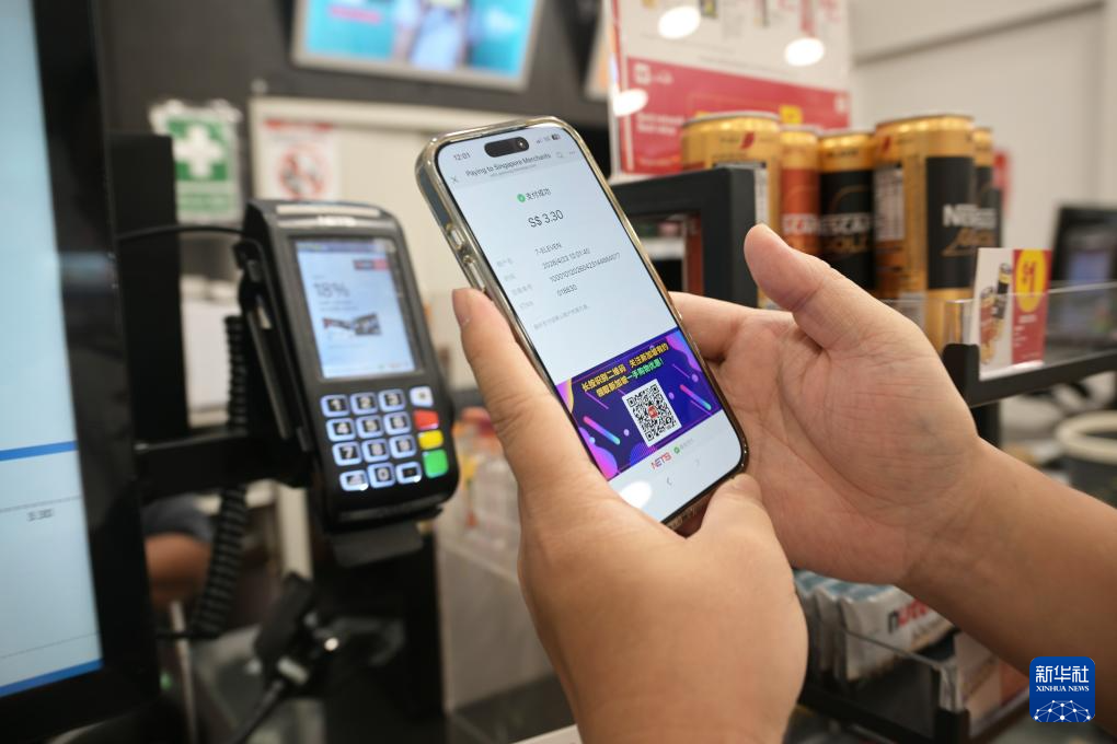 4月23日,顾客在新加坡的一家商店通过微信扫码进行支付。新华社发(邓智炜摄)