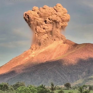 这是2025年4月8日在菲律宾内格罗斯岛拍摄的正在喷发的坎拉翁火山。新华社发(菲律宾火山地震研究所供图)